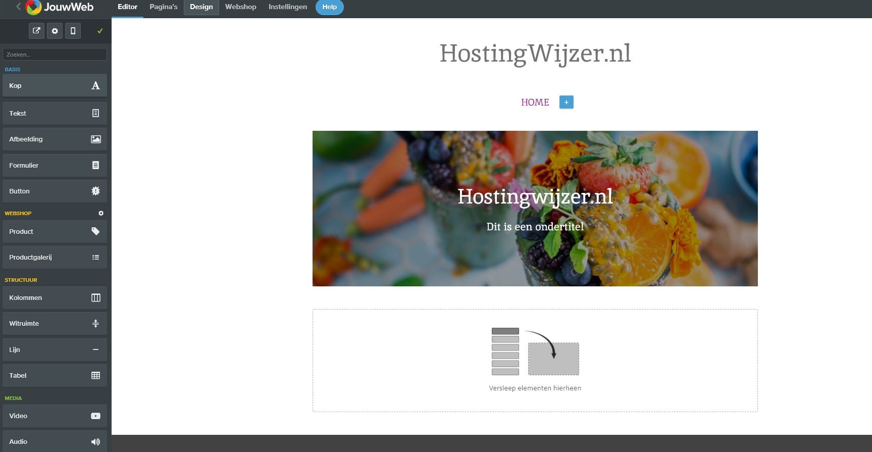 JouwWeb maakt ook gebruik van een zogenaamde drag and drop editor: je kan van alles slepen naar een plek waar je het wil hebben staan. Als iets je niet bevalt kun je er op klikken en verwijderen. Helemaal voor mensen die niet eerder met websites hebben gewerkt is dit ideaal. Het ontwerpen van de site is echt een kwestie van slepen en invullen en de design instellingen naar je eigen hand zetten. Makkelijker dan dit ga je het niet krijgen.