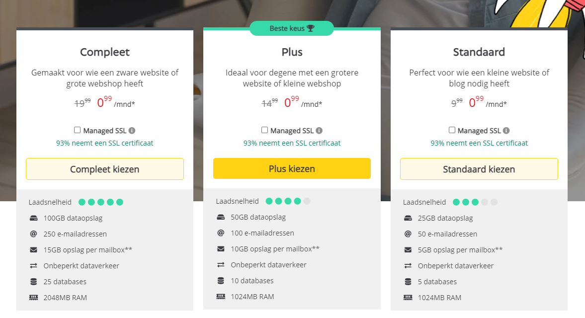 Het grootste nadeel(tje) is in onze ogen dat een SSL certificaat niet standaard is inbegrepen, dit is een extra optie die €1,95 per maand kost (en die eigenlijk je wel moet nemen).