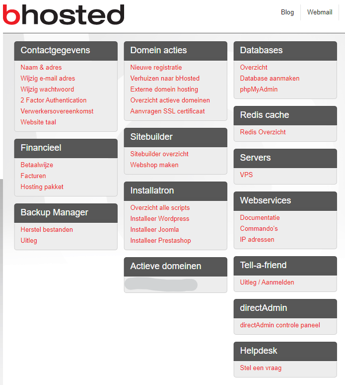 Gratis Direct Admin zit al in het kleinste pakket en ook SSL zit bij de kosten in. Normaliter heb je ook gratis backup bij bHosted.