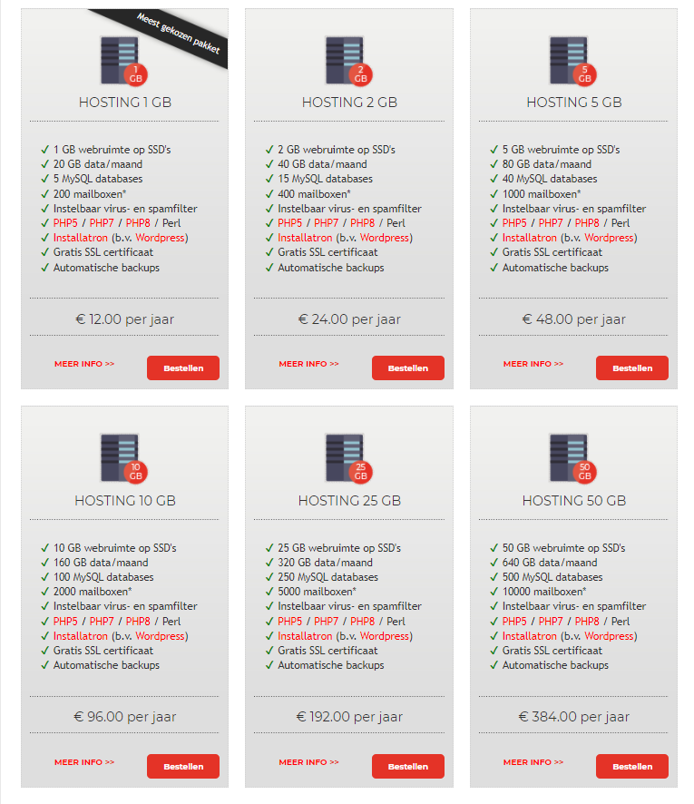 De Linux pakketten zijn er vanaf β¬10,- per maand: