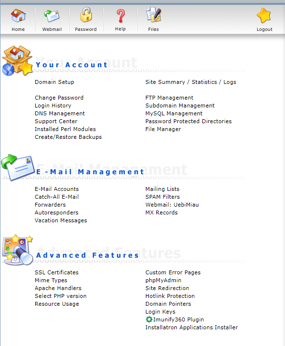 - In het Control Panel kun je veel zelf regelen, via onder meer de Direct Admin en het Installatron script.