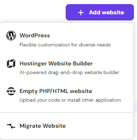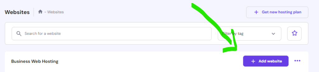 Je logt bij hostinger.nl in, je kiest voor een hostingpakket en vervolgens kan je in het website overzicht het hosting pakket zien. Daar kies je voor ‘add new website'