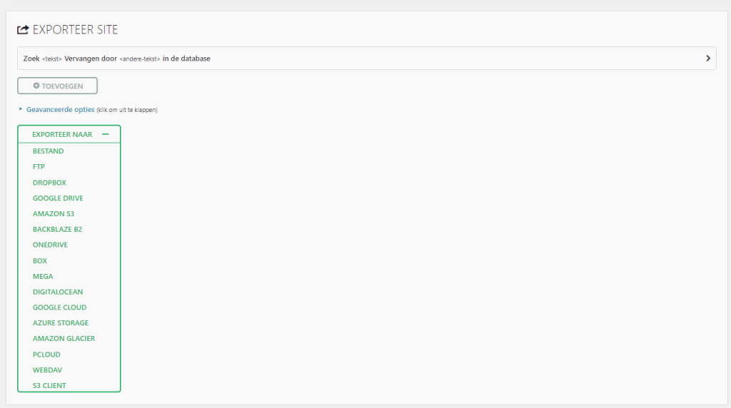 Goed, om te beginnen installeer je de plugin – die je vervolgens in de backend kan terugvinden. Via deze plugin kan je ook direct een backup maken. Zoals hierboven al beschreven raden we dit aan. Na de backup kun je aan de slag.