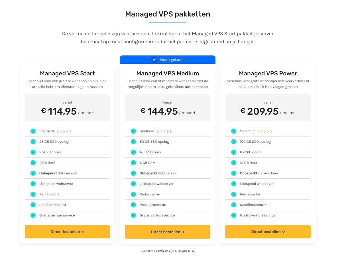 Dit zijn de managed VPS pakketten, je kan dus ook nog overwegen om te kiezen voor een eigen Virtual Private Server, of een eigen Virtual Private Cloud.