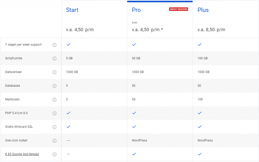 - De eerste drie maanden kosten de hostingpakketten slechts €0,99 per maand.