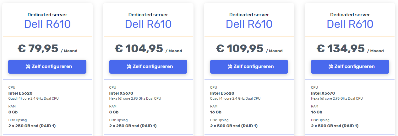 Ook de dedicated servers zijn aantrekkelijk geprijsd. Er zijn wat ons betreft echter betere aanbieders van Dedicated servers dan Vimexx, een provider die we toch meer als goedkoop alternatief beschouwen.