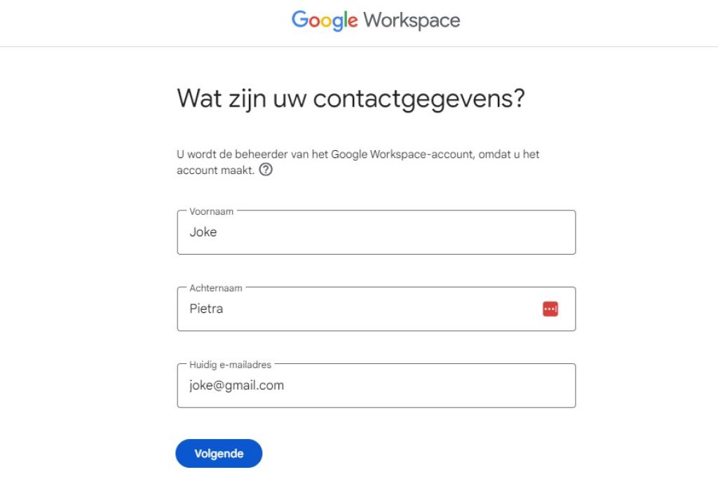 - Ga naar workspace.google.com en klik op ‘Nu Starten'.